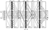 На фиг.1 также показана часть горизонтального разреза кольца, проходящего по зеркалам 6 и 7, содержащая вид сверху на спиральный путь оптических сигналов от источников 1 через входное отверстие 11 зеркала 6 к выходному отверстию 12 зеркала 7. На виде сверху показано, что все элементы кольца установлены под углом к массиву линейных окончаний, а отверстия в зеркалах 6 и 7 сдвинуты на KW равных отрезков. Поэтому оптический сигнал KW-1 раз отражается от зеркал 6 и 7, смещаясь при каждом отражении от зеркала 7 на один отрезок, а затем через выходное отверстие зеркала 7 выходит к приемникам. На фиг.1 KW=2.