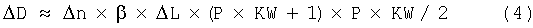 При разности коэффициентов преломления для соседних частотных компонент n и промежутке между призмами L призма смещает их на D.