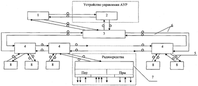 Изобретение относится к области радиоэлектроники и может быть использовано для организации внутрикорабельной и внешней связи. Техническим результатом изобретения является расширение функциональных возможностей и повышение качества каналов передачи и приема информации при одновременном сокращении массо-габаритных характеристик. Это происходит за счет дополнительного введения в систему микроЭВМ, пульта оператора, блока синхронизации кольца, блока местных коммутаций (БМК) и интерфейса сопряжения с радиосредствами, при этом микроЭВМ соединена с пультом оператора и блоком синхронизации кольца, причем блок синхронизации кольца соединен с пультом оператора и с БМК, а БМК соединен с интерфейсом сопряжения радиосредств. 1 ил.