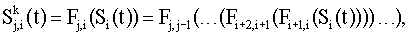 Первое в последовательности применений функций связи – применение функции Fi+1,i(Si(t)) – дает значение – скорректированное значение сигнала Si(t) относительно элемента i+1,