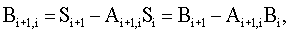 где Тi+1,i – множество пар отсчетов Si(t) и Si+1(t) по одним и тем же элементам сцены, упорядоченное по времени: значению t=1 соответствует первый по времени отсчет, t=2 – следующий и так далее до Тi+1,i-го отсчета; Si и Si+1 – средние значения сигналов i-го и (i+1)-го элементов на интервале Тi+1,i, скорректированные относительно элемента j сигналы элементов i=1, 2,…, N определяются по исходным некорректированным сигналам S, (t) и коэффициентам Ai+l,i+l-1 и Вi+l,i+l-1, 1=1, 2,…,j-i, следующим образом: