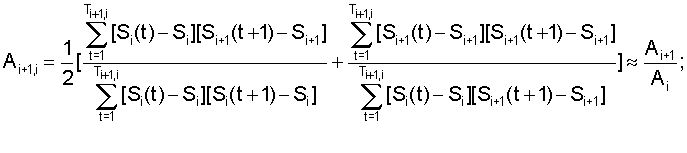Si и Si+1 – средние значения сигналов i-го и i+1-го элементов на интервале Тi+1,i. При увеличении интервала отношение Ai+1,i стремится к Ai+1/Ai.