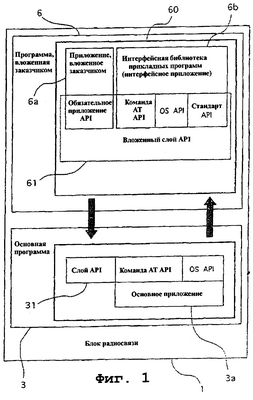 – прикладную программу заказчика 6а, в частности, основанную на наборе исходных функций, каждая из которых позволяет послать команды AT в главную прикладную программу 1а или обеспечивает прием команды AT от этой прикладной команды;