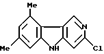 Пример V2-гидразино-пиколин(2-гидразино-4-метилпиридин) ![]() 2-гидразино-4-пиколин получают из 2-хлор-4-пиколина аналогично методу согласно примеру IV. Значение Rf: 0,06 (из смеси дихлорметана и метанола в соотношении 10:1) Пример VI 2,4-диметил-5,6,7,8-тетрагидро – – карболин![]() 78 г (максимум 0,49 моль) сырого соединения, полученного согласно примеру IV, при комнатной температуре (примерно 25oC) подвергают взаимодействию с 59 мл (0,56 моль) циклогексанона, причем повышается температура реакционной смеси. По истечении 2 часов больше не имеется эдукта (контроль путем тонкослойной хроматографии с использованием смеси дихлорметана и метанола в соотношении 10:1). Реакционную смесь подают в 40 мл диэтиленгликоля, и реакцию осуществляют при температуре флегмы, причем путем перегонки на водоотделителе удаляют компоненты, точка кипения которых ниже точки кипения растворителя (например, реакционную воду и избыточный циклогексанон). По истечении 3 часов больше не имеется гидразона (контроль путем тонкослойной хроматографии с использованием смеси петролейного эфира и сложного эфира уксусной кислоты в соотношении 1:1). Реакционную смесь охлаждают до комнатной температуры, и при перемешивании добавляют ацетон. Образовавшийся осадок отсасывают, дополнительно промывают ацетоном и сушат в вакууме, причем получают 34,4 г продукта. Маточные растворы, почти не содержащие растворителя, повторно обрабатывают ацетоном, причем получают еще 9,3 г продукта (общий выход на трех стадиях: 43,7 г (0,22 моль, 47% теории). Точка плавления: 248oC Значение Rf: 0,41 (из смеси дихлорметана и метанола в соотношении 20:1) 1H-ЯМР (d6-ДМСО, 200 МГц, TMS): = 1,78 (м, 4H), 2,40 (с, 3H), 2,48 (с, 3H), 2,64 (м, 2H), 2,82 (м, 2H), 6,57 (с, 1H), 10,84 (с, 1H).