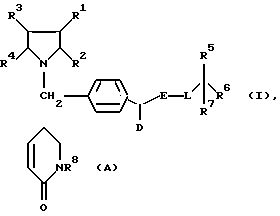 (57) Реферат: Описываются новые производные циклоалкано-индола и азаиндола, смесь их изомеров или отдельные изомеры общей формулы I, их фармацевтически приемлемые соли, в которой R1 и R2 вместе со связывающей их двойной связью означают фенильное или пиридильное кольцо или кольцо формулы (А), в которой R8 – водород, C1-C4-алкил; R1, R4 вместе со связывающей их двойной связью означают фенильное кольцо или четырех- восьмичленный циклоалкеновый остаток, причем указанные для R1/R2 и R3/R4 кольца незамещены или замещены 1 – 3 одинаковыми или различными заместителями, выбранными из группы, включающей CF3, C1-C6 алкокси, C1-C6 алкоксикарбонил, C1-C6 алкил, возможно замещенный гидроксигруппой; D – водород, C4-C12 циклоалкил, C1-C12 алкил; Е – группа СО- или CS; L – О, S, – NR9; R9 – водород, C1-C6 алкил, возможно замещенный фенилом, гидрокси; R5 – фенил, пиридил, тиенил, возможно замещенные, R6 – водород, карбоксигруппа, C1-C5алкоксикарбонил, C1-C6алкил, возможно замещенный гидроксигруппой, -O-CO-R15, R15 – фенил, возможно замещенный, C1-C22 алкил, C2-C22алкенил; R7 – водород, R6 и R7 вместе означают группу формулы =О; описываются также промежуточные соединения, ингибирующая высвобождение ассоциированных с аполипопротеином В-100 липопротеинов фармацевтическая композиция. 3 с. и 2 з.п. ф-лы, 35 табл.