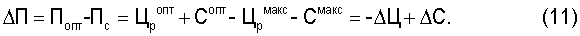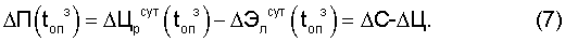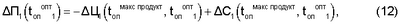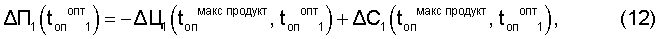 где C1(tоп макс продукт, tоп опт 1) – экономия издержек, выигрыш в стоимости энергозатрат, полученный за счет частичного снижения продуктивности поголовья или за счет некоторого уменьшения (по абсолютной величине) цены реализованной в будущем продукции данной технологии Ц1(tоп макс продукт, tоп опт 1) в результате перехода от управления по критерию максимума продукции с любыми затратами при значении tоп макс продукт режима наивысшей продуктивности к управлению по критерию максимума прироста прибыли при экономически оптимальном значении tоп опт управляемого параметра tоп.
