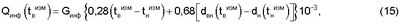 Показатель уровня теплового комфорта в виде величины ощущаемой температуры tоп включает в себя комплекс факторов температуры воздуха Т (далее в тексте заявки измеряемая и усредненная по высоте птичника температура внутреннего воздуха в помещении при технологии напольного выращивания бройлеров для удобства обозначена tв изм), скорости его движения и лучистых тепловых потоков между телом животного или птицы и нагретыми или охлажденными ограждающими конструкциями помещения. Для обсуждаемой модели продуктивности бройлеров в клеточных батареях значения ощущаемой температуры и температуры воздуха практически равны. Поэтому модель продуктивности действует и при замене в ней величины температуры воздуха на величину ощущаемой температуры, которая необходима при оценке теплового состояния молодняка при лучистом обогреве помещения.