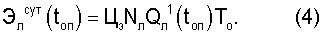 Суточные затраты на энергию в системе электрического или газового обогрева Эл сут (tоп) пропорциональны удельной стоимости энергии данного вида Цэ, руб./кВт·ч, в данном регионе страны, количеству зон обогрева, или количеству лучистых обогревателей в помещении Nл, отн.ед., мощности применяемого локального обогревателя Qл 1(tоп), кВт.