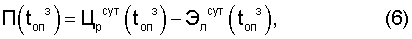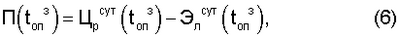 Целевая функция оптимизации значения управляемого параметра ощущаемой температуры tоп опт в виде показателя прибыли П(tоп з) или показателя прироста прибыли П(tоп з) при переборе всевозможных искусственно задаваемых значений tоп з, которые численно равны возможным измеренным значениям tоп в диапазоне между ее наименьшим и наибольшим заданными технологическими значениями: