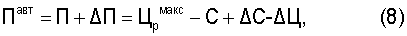где Павт – годовая прибыль предприятия или технологии, руб./год; Цр макс – рыночная цена реализованной за год продукции в действующей системе обогрева по условию получения наивысшей продуктивности поголовья, руб./год; С – годовые издержки производства, руб./год; П – увеличение прибыли, руб./год, из-за экономии издержек в результате экономически обоснованного снижения затрат на энергию в обсуждаемой технологии С, руб./год, при неизбежно возникающих при предлагаемом методе экономической оптимизации расчетных потерях продуктивности Ц, руб./год ( Ц – по абсолютной величине).