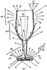 Отражатель света 9 служит для того, чтобы изменить направление распространения света, излучаемого светодиодами, на 90° и тем самым направить его от горизонтально расположенных светодиодов 7 вертикально вверх в ножку 2 рюмки. В качестве отражателей 9 используется предварительно отполированная алюминиевая фольга толщиной 0,1-0,2 мм, либо алюминиевая фольга с зеркальным блеском. Полоска фольги шириной примерно 5 мм и длиной 14 мм сгибается пополам под углом 90°, причем зеркальная сторона фольги обращена наружу. Затем, отступив примерно 5 мм в обе стороны от сгиба фольги, фольгу еще раз изгибают в этих двух местах на 45° в сторону, противоположную первичному изгибу. В результате получается отражатель с двумя зеркальными поверхностями, наклоненными под углом 45° (угол при вершине составляет 90°).
