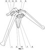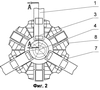 на фиг.2 – подставка для елки, вид сверху (положение съемных ножек при самом большом диаметре ствола елки, фиксаторы расположены в крайних к периферии пазах),