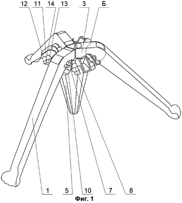 Наиболее близкой по технической сущности к предлагаемому устройству является выбранная в качестве прототипа подставка для елки, содержащая три съемные ножки, выполненные каждая в виде двуплечего рычага, одно из плечей которого является опорным, а другое – зажимным, и емкость для установки ствола елки и размещения жидкости в виде конуса с горловиной в его основании и тремя узлами для установки двуплечих рычагов, выполненными на кромке горловины и расположенными под углом 120 градусов друг к другу (Патент США №2028129, кл. A 47 G 33/12, опуб. 1936 год).