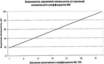 К – значение клинического коэффициента ИИ, Y – значение вероятной летальности.