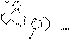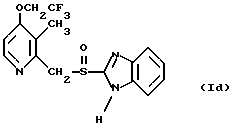 В толуоле (50 мл) растворили 2.1 г (6.0 ммолей) 2-[[[3-метил-4-(2,2,2-трифторэтокси) -2-пиридинил] -метил] тио]- бензимидазола. К раствору добавили 65 мкл (3.6 ммоля) воды, 2.6 мл (15.0 ммолей) (-)-диэтил D-тартрата и 1.8 мл (6.0 ммолей) изопропоксида титана (IV). Смесь перемешивали в течение 60 минут при 50oC и затем охладили до комнатной температуры. Добавили 1.05 мл (6.0 ммолей) N,N-диизопропилэтиламина и 1.1 мл (6.0 ммолей) гидропероксида кумола (80%). После перемешивания в течение 16 часов при комнатной температуре смесь в соответствии с ахиральной высокоэффективной жидкостной хроматографией состояла из 11% сульфида, 7% сульфона и 78% сульфоксида. К смеси добавили 50 мл толуола и полученный раствор три раза экстрагировали водным раствором аммиака (12%) при общем объеме 150 мл. Смешанные водные слои нейтрализовали добавлением концентрированной уксусной кислоты (30 мл). После этого осуществили экстракцию, выпаривание и тонкослойную хроматографию, получая 1.2 г названного соединения с чистотой 99.9% (ахиральный анализ) и с энантиомерным избытком (е. е.) 55% (хиральный анализ). После обработки остатка ацетонитрила получили осадок, который удалили фильтрацией. После выпаривания фильтрата получили масло с повышенной оптической чистотой. Повторив эту процедуру два раза, получили 0.63 г (29%) желаемого соединения в виде масла с оптической чистотой, соответствующей энантиомерному избытку 99.5%.