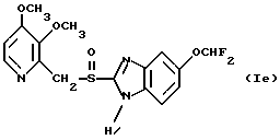 бензимидазола. К раствору добавили 40 мкл (2.2 ммоля) воды, 1.6 мл (9.4 ммоля) (-)-диэтил D-тартрата и 1.1 мл (3.8 ммоля) изопропоксида титана (IV). Смесь перемешивали в течение 60 минут при 50oC и затем охладили до комнатной температуры. Добавили 0.44 мл (2.6 ммоля) N, N-диизопропилэтиламина и 1.1 мл (6.0 ммолей) гидропероксида кумола (80%). После перемешивания в течение 2-х часов при комнатной температуре смесь в соответствии с ахиральной высокоэффективной жидкостной хроматографией состояла из 9% сульфида, 4% сульфона и 86% сульфоксида. К смеси добавили толуол (50 мл) и полученный раствор три раза экстрагировали водным раствором аммиака при общем объеме 150 мл. Смешанные водные слои нейтрализовали добавлением концентрированной уксусной кислоты (30 мл). После этого осуществили экстракцию, выпаривание и тонкослойную хроматографию, при этом получили 1.62 г названного соединения с чистотой 99.8% (ахиральный анализ) и энантиомерным избытком (е. е. ) 90% (хиральный анализ). После обработки материала ацетонитрилом образовался осадок, который можно было удалить фильтрацией. После концентрирования фильтрата получили 1.36 г (60%) названного соединения в виде масла с оптической чистотой, соответствующей энантиомерному избытку 91.5%.