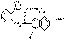 бензимидазола. К раствору добавили 65 мкл (3.6 ммоля) воды, 2.6 мл (15.0 ммолей) (-)-диэтил D-тартрата и 1.8 мл (6.0 ммолей) изопропоксида титана (IV). Смесь перемешивали в течение 60 минут при 50oC и затем охладили до комнатной температуры. Добавили 1.05 мл (6.0 ммолей) N,N-диизопропилэтиламина и 1.1 мл (6.0 ммолей) гидропероксида кумола (80%). После перемешивания в течение 16 часов при комнатной температуре смесь в соответствии с ахиральной высокоэффективной жидкостной хроматографией состояла из 11% сульфида, 7% сульфона и 78% сульфоксида. К смеси добавили 50 мл толуола и полученный раствор три раза экстрагировали водным раствором аммиака (12%) при общем объеме 150 мл. Смешанные водные слои нейтрализовали добавлением концентрированной уксусной кислоты (30 мл). После этого осуществили экстракцию, выпаривание и тонкослойную хроматографию, получая 1.2 г названного соединения с чистотой 99.9% (ахиральный анализ) и с энантиомерным избытком (е. е.) 55% (хиральный анализ). После обработки остатка ацетонитрила получили осадок, который удалили фильтрацией. После выпаривания фильтрата получили масло с повышенной оптической чистотой. Повторив эту процедуру два раза, получили 0.63 г (29%) желаемого соединения в виде масла с оптической чистотой, соответствующей энантиомерному избытку 99.5%.