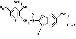 5-Метокси-2-[[(4-метокси-3,5-диметил-2-пиридинил) метил] тио] бензимидазол (4.0 г, 12.1 ммоля) суспендировали в толуоле (12 мл). При перемешивании при 50oC добавили (-)-диэтил D-тартрат (0.17 мл, 1.0 ммоля) и изопропоксид титана (IV) (0.15 мл, 0.50 ммолей). Смесь перемешивали в течение 50 минут при 50oC и затем приблизительно при 30oC добавили N,N-диизопропилэтиламин (0.085 мл, 0.50 ммолей). Затем добавили гидропероксид кумола (83%: 2.1 мл, 11.9 ммоля) и смесь перемешали в течение 15 минут при 30oC. Анализ сырой смеси показал, что она состоит из 3.6% сульфида, 2.7% сульфона и 93% сульфоксида с оптической чистотой, соответствующей энантиомерному избытку 91%. Продукт в чистом виде не получали.