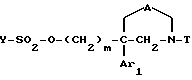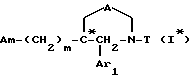 (57) Реферат: Описываются новые замещенные гетероциклические соединения формулы I, где А означает двухвалентный радикал, выбранный из -О-СО-, -CH2O-CO- и др., как указано в п.1 формулы, R1 означает водород или C1-C4-алкил; m – 2, 3; Ar1 означает фенил, возможно замещенный галогеном, гидроксилом, C1-C4-алкокси, C1-C4-алкилом, трифторметилом, метилендиокси; Т означает -CH2-Z, -CH(C6H5)2, -C(C6H5)3. Соединения формулы I обладают сродством к рецепторам тахикинина при ингибиторной константе Ki ниже 10-8 М. Описывается способ получения соединений формулы I и промежуточные соединения, используемые в нем. Описывается также фармацевтическая композиция, обладающая антагонистической активностью к рецепторам нейрокининов, содержащая в качестве активного вещества соединение формулы I. 12 с. и 13 з.п.ф-лы, 3 табл.