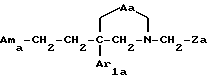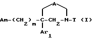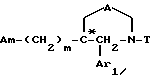 Таким образом, одним объектом настоящего изобретения являются соединения формулы![]() где A является двухвалентным радикалом, выбираемым из A1) -O-CO- A2) -CH2-O-CO A3) -O-CH2-CO A4) -O-CH2-CH2– A5) -N(R1)-CO- A6) -N(R1)-CO-CO- A7) -N(R1)-CH2-CH2– A8) -O-CH2– где R1 обозначает водород или (C1-C4)-алкил; m равен 2 или 3; Ar1 обозначает фенил, который не замещен либо моно- или полизамещен заместителем, выбираемым из группы, включающей атом галогена, гидроксил, (C1-C4)-алкокси, (C1-C4)-алкил, трифторметил и метилендиокси, причем указанные заместители являются одинаковыми или разными; тиенил, который не замещен или замещен атомом галогена; бензотиенил, который не замещен или замещен атомом галогена; нафтил, который не замещен или замещен атомом галогена; индолил, который не замещен или N-замещен (C1-C4)-алкилом или бензилом; имидазолил, который не замещен или замещен атомом галогена; пиридил, который не замещен или замещен атомом галогена; или бифенил; T обозначает группу, выбираемую из CH2-Z, -CH(C6H5)2 и -C(C6H5)3; T может также быть группой -CO-B-Z, если A является двухвалентным радикалом, выбираемым из -O-CH2-CH2-, -N(R1)-CH2-CH2– и -O-CH2-; B обозначает прямую связь или метилен; Z обозначает возможно замещенную моно-, ди- или трициклическую ароматическую или гетероароматическую группу; и Am обозначает: i – либо группу Am1 формулы ![]() где J1 является: i1 – или группой ![]() где Ar2 обозначает пиридил; фенил, который не замещен либо моно- или полизамещен заместителем, выбираемым из группы, включающей атом галогена, гидроксил, (C1-C4)-алкокси, (C1-C4)-алкил, трифторметил, нитро и метилендиокси, причем указанные заместители являются одинаковыми или разными; тиенил; пиримидил; или имидазолил, который не замещен или замещен (C1-C4)-алкилом; и R2 обозначает водород; (C1-C7)-алкил; бензил; формил; или (C1-C7)-алкилкарбонил; i2 – или группой ![]() где Ar2 имеет указанные выше значения; n = 0 или 1; и R3 является группой, выбираемой из: (1) водорода; (2) (C1-C7)-алкила; (3) формила; (4) (C1-C7)-алкилкарбонила; (5) циано; (6) -(CH2)q-OH; (7) -(CH2)q-O-(C1-C7)-алкила; (8) -(CH2)q-OCHO; (9) -(CH2)q-OCOR17; (10) -(CH2)q-OCONH-(C1-C7)-алкила; (11) -NR4R5; (12) -(CH2)q-NR6C(=W1)R7; (13) -(CH2)q-NR6COOR8; (14) -(CH2)q-NR6SO2R9; (15) -(CH2)q-NR6C(=W1)NR10R11; (16) -CH2-NR12R13; (17) -CH2-CH2-NR12-R13; (18) -COOH; (19) (C1-C7)-алкоксикарбонила; (20) -C(=W1)NR10R11; (21) -CH2-COOH; (22) (C1-C7)-алкоксикарбонилметила; (23) -CH2-C(=W1)NR10R11; (24) -O-CH2CH2-OR18; (25) -NR6COCOR19; (26) -CO-NR20-NR21R22; (27) ![]() (28) ![]() или R3 образует двойную связь между атомом углерода, к которому он присоединен, и смежным атомом углерода пиперидинового кольца; q равен 0, 1 или 2; W1 обозначает атом кислорода или атом серы; R4 и R5 независимо друг от друга обозначают водород или (C1-C7)-алкил; R5 может также быть (C3-C7)-циклоалкилметилом, бензилом или фенилом; либо R4 и R5 вместе с атомом азота, к которому они присоединены, образуют гетероцикл, выбираемый из азетидина, пирролидина, пиперидина, морфолина, тиоморфолина, пергидроазепина и пиперазина, который не замещен или замещен в 4-положении (C1-C4)-алкилом; R6 обозначает водород или (C1-C7)-алкил; R7 обозначает водород; (C1-C7)-алкил; винил; фенил; бензил; пиридил; (C3-C7)-циклоалкил, который не замещен или замещен одним или несколькими метилами; фурил; тиенил; пирролил или имидазолил; либо R6 и R7 вместе обозначают группу -(CH2)p-; p равен 3 или 4; R8 обозначает (C1-C7)-алкил или фенил; R9 обозначает (C1-C7)-алкил; аминогруппу, которая является свободной или замещена одним или двумя (C1-C7)-алкилами; или фенил, который не замещен либо моно- или полизамещен заместителем, выбираемым из группы, включающей атом галогена, (C1-C7)-