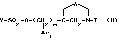 Если соединение формулы X подвергают взаимодействию с соединением формулы XI, то эту реакцию осуществляют в инертном растворителе, таком как N,N-диметилформамид, ацетонитрил, метиленхлорид, толуол или изопропанол, в присутствии основания или без него. Если использовано основание, его выбирают из органических оснований, таких как триэтиламин, N,N-диизопропилэтиламин и N-метилморфолин, или из карбонатов или бикарбонатов щелочных металлов, таких как карбонат калия, карбонат натрия и бикарбонат натрия. При отсутствии основания эту реакцию осуществляют при использовании избыточного количества соединения формулы XI и в присутствии йодида щелочного металла, такого как йодид калия или йодид натрия. Если -A- в соединении формулы X является двухвалентным радикалом -O-CO- или -CH2-O-CO-, реакцию осуществляют при температуре от комнатной до 80oC. Если -A- в соединении формулы X является двухвалентным радикалом -O-CH2-CO-, -O-CH2-CH2-, -N(R1)-CO-CO-, -N(R1)-CH2-CH2-, -N(R1)-CO- или -O-CH2-, реакцию осуществляют при температуре от комнатной до 100oC.
