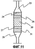 Фиг.11 иллюстрирует часть системы доставки в соответствии с десятым воплощением данного изобретения. Система в соответствии с данным воплощением включает в себя три капсулы 29, 30 и 31, которые разделены каждая от другой стопорными частями 25, 26, 27 и 28. В данном воплощении диаметр стопорных частей изменяется вдоль их длины для стопорных частей 25 и 28, но не для стопорных частей 26 и 27.