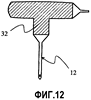 Фиг.12 иллюстрирует систему доставки в соответствии с одиннадцатым воплощением данного изобретения. Фигура показывает капсулу 32, имеющую три конца и корпус 12, состоящий из двух частей.