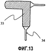 Фиг.13 иллюстрирует систему доставки в соответствии с двенадцатым воплощением данного изобретения, показывая капсулу 33 в форме буквы “L” и корпус 34, состоящий из трех частей.