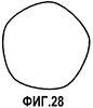 Фиг.22-30 иллюстрируют профили поперечного сечения капсулы, содержащей фармацевтическую композицию в соответствии с двадцать первым – двадцать девятым воплощениями данного изобретения. Профиль поперечного сечения может, таким образом, представлять собой круг, эллипс, многоугольник (пятиугольник, шестиугольник, семиугольник, восьмиугольник и т.д.), прямоугольник, треугольник, квадрат или сочетание правильных или неправильных форм. Когда используют правильные формы, такие как прямоугольники или треугольники, ребра могут быть закруглены или не закруглены. Профиль поперечного сечения может также иметь любую условную форму. Для специалиста в данной области является очевидным, что формы, приведенные на Фиг.22-30, являются неограничивающими примерами.
