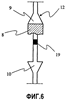Фиг.6 иллюстрирует часть системы доставки в соответствии с пятым воплощением данного изобретения. В данном воплощении корпус 12 состоит из двух частей, как в третьем и четвертом воплощениях, но здесь существует стык двух частей, сделанный с помощью адгезива. Данная фигура показывает корпус 12 и часть капсулы 8, а также стык 19, состоящий из адгезива. Для квалифицированного специалиста в данной области является очевидным, что возможно применять любой биосовместимый адгезив. Также возможно использовать, например, проволочную сварку сопротивлением.