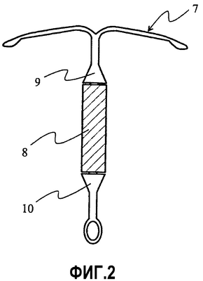 Система доставки, обсуждаемая в данной заявке, в основном, охватывает внутриматочные системы (ВМС), внутришеечные (интрацервикальные) системы и внутривагинальные системы. Данные системы обычно состоят из корпуса и капсулы, содержащей одно или более фармацевтически активных средств. Обычно используемая внутриматочная система представляет собой Т-образный предмет, изготовленный из пластичного материала, который состоит из удлиняющего элемента, имеющего на одном конце поперечный элемент, включающий в себя два крыла, удлиняющий элемент и поперечный элемент образуют по существу Т-образное изделие, когда систему располагают в матке. Удлиняющий элемент имеет, например, медную проволоку, намотанную частично вокруг него, причем проволока обладает способностью к высвобождению ионов меди (и соответствующую вышеупомянутой капсуле, содержащей фармацевтически активное средство). Также ВМС обладают способностью высвобождать гормоны или другие существующие активные средства, и их применяют либо для контрацепции или для лечения гормональных нарушений. В дополнение к Т-образным ВМС также известны системы, имеющие, например, форму кольца, цифры “7” или буквы “S”. Сходные конструкции используют для внутришеечных и внутривагинальных систем.