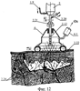 На Фиг.12 – схематичное изображение реализации поверхностной пневмоимпульсной обработки (пневмоимпульсный массаж) области липосакции импульсными газожидкостными струями, состоящими из газожидкостной смеси озон/NO-содержащего и озонид/NO-содержащего 5-10% водного раствора масляной эмульсии типа “масло в воде”;