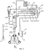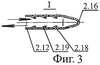 Пневмогидравлический узел (ПГУ) 2 (Фиг.2-Фиг.5) содержит несущий корпус 2.1 с крышкой 2.2, камеру-рессивер 2.3 в виде сильфона, жестко связанную через опорный фланец 2.4 с несущим корпусом 2.1. При этом на одном из штуцеров 2.5 камеры-рессивера 2.3 установлен регулятор расхода воздушного потока 2.6, подаваемого от пневмокомпрессора (ПК) 1.5 посредством пневмопровода 1.6, а на другом штуцере 2.7 закреплен электроклапан (ЭК) 2.8 (открывает или прерывает подачу воздушного потока от пневмокомпрессора (ПК) 1.5), соединенный посредством кабеля 2.9 и управляющего ключа (К-ЭК) 2.10 с блоком управления (БУ) 1.3. На выходном конце электроклапана (ЭК) 2.8 через резьбовое соединение присоединен двухконусный инжектор 2.11, который связан с пневмогидравлической диспергирующей канюлей 2.12 (для осуществления гидроимпульсной тоннельной дезинтеграции и эмульгирования гидропрепарированной жировой ткани) или 2.13 (для осуществления гидроимпульсной поверхностной (субдермальной) дезинтеграции и эмульгирования гидропрепарированной жировой ткани) посредством их фланцев 2.14, закрепляемых в несущем корпусе 2.1. При этом двухконусный инжектор 2.11 снабжен всасывающим штуцером 2.15, который посредством гидропровода 1.9 присоединен к емкости 4, заполненной озон/NO- или озонид/NO-содержащим лекарственным раствором. Кроме того, пневмогидравлические диспергирующие канюли 2.12 и 2.13, с одной стороны, снабжены конусообразным и скругленным на конце рабочим окончанием (для снижения опасности травмирования сосудов и нервов при липосакции), которое имеет сопловое отверстие 2.16 (дистальное) и 2.17 (тангенциальное) соответственно, а позади соплового отверстия – дренажные отверстия 2.18 с углом наклона, обращенным в сторону истечения струи озон/NO-содержащей газовой смеси или озон/NO-содержащей газожидкостной струи, а с другой стороны – отводящим штуцером 2.19, посредством гидропровода 2.20, соединенным с электроотсасывателем (ЭО) 5, обеспечивающим вакуумную аспирацию из области липосакции диспергата жировой ткани. Кроме того, для исключения неконтролируемого перемещения пненмогидравлической диспергирующей канюли 2.12 или 2.13 вглубь области липосакции в процессе дезинтеграции и эмульгирования жировой ткани на ней установлена ограничительная втулка 2.21.