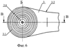 на Фиг.7 – сечение акустического узла с развитым излучающим торцом (сечение В-В на Фиг.6);