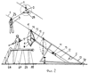 Подушка 4 ловителя может иметь форму эллипса. Цифрой 24 обозначена пожарная лестница, достающая до верхних этажей последнего здания; 25 – вспомогательный ручной захват, включенный в разрыв стального троссика между карабином 2 и нагрудным кольцом 3; 26 – лесенка с перилами; 27 – скатная доска.