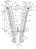 Образуемая усеченными конусами 17 и 18 внутренняя полость 22 сообщена со стороны малых нижних их оснований посредством кольцеобразного прохода 23 с внутренней полостью конусообразного зазора 16.