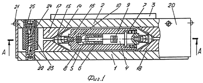 Заявляемое изобретение “Устройство для микроподачи заготовок при шлифовании” содержит: основание 1 и верхнюю плиту 2 с установленным на ней приспособлением 3 для закрепления заготовки; силовой элемент, состоящий из штока 4, на котором с возможностью осевого перемещения установлен упор 5, пьезоэлектрического элемента 6, подключенного к ультразвуковому генератору (на фиг. не показан), пружины 7, корпуса 8, клиньев 9 и 10, пружин 11, 12 и двух электромагнитов 13; две планки 14, несущие шарики 15 и закрепленные винтами 16 на обоих концах силового элемента; клинья 17 и 18, закрепленные на верхней плите 2 и основании 1 винтами 19; кожух 20, закрепленный винтами 21 по периметру верхней плиты 2 и касающийся основания 1; две цилиндрические направляющие в виде скалок 22, неподвижно закрепленных в основании 1, и двух втулок 23, жестко связанных с верхней плитой 2; две пружины 24, одним концом закрепленные в скалках 22, а другим – в винтах 25, ввернутых в верхнюю плиту 2 и служащих для натяжения пружин 24.