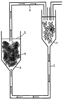 На этой фигуре в емкость 1 поступают фосфолипиды (фосфолипид GLA (борагеамидопропил PG-диаммонийхлоридфосфат натрия) и фосфолипил РТС (кокоамидопропил PG-диаммонийхлоридфосфат), активные вещества и вещества, придающие эластичность, она соединена посредством трубы 2 с емкостью 3, имеющей больший объем, которая является емкостью для осуществления скрепления или пропитки и в которой находятся чулки или колготки или любая текстильная основа, имеющая прямой контакт с кожей 4. Сетка 5 закрывает сверху указанную емкость 3. Труба 6 соединяет емкость 3 с емкостью 1. Таким образом, система является замкнутой и обеспечивает постоянный поток.
