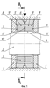 На фиг.1 показан продольный разрез гидростатического подшипника; на фиг.2 – разрез А-А на фиг.1 с радиальным каналом корпуса, выполненным в виде расположенных по окружности дросселирующих отверстий; на фиг.3 – разрез А-А на фиг.1 с радиальным каналом корпуса, выполненным в виде щелевого дросселирующего зазора.