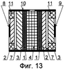 фиг.13 – пирогенератор, тринадцатый пример исполнения (пиротехнический состав разогревает две порции электролитного материала для двух гальванических ячеек);