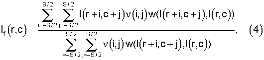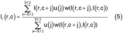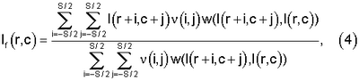 В данном случае функции v и w являются функциями Гаусса, однако, следует отметить, что функции v и w могут быть иными, чем Гауссианы (см. J.J.Francis, G.de Jager “The Bilateral Median Filter”, Proc. of the 14th Annual Symposium of the Pattern Recognition Association of South Africa, 2003 [14]).