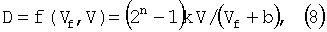 D=f(Vf,V)=(2n-1)kV/(Vf+b),