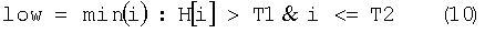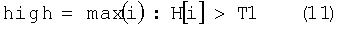 где T1 и T2 – пороговые значения, причем порог T2 вводят, чтобы избежать излишнего ошибочного затемнения изображения,