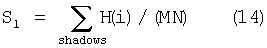 – отношение максимума гистограммы в тенях к глобальному максимуму гистограммы,