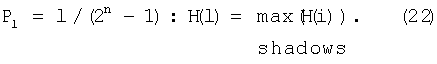 Предварительно по глобальной гистограмме яркостей Н вычисляют признаки. Весь диапазон яркостей разбивают на 3 поддиапазона: