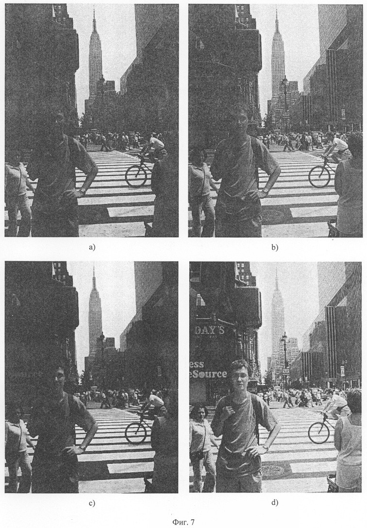 Фиг.8. Сравнение результатов предлагаемого способа коррекции исходного изображения 7(b) заявляемым способом 7(с) и способом, использующимся в коммерческой программе Adobe Photoshop CS пункт меню Shadow/Highlight 7(a).