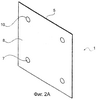 Отрицательный электрод 2, положительный электрод 3 и сепаратор 4 могут быть заключены внутри галетного гальванического элемента 1 с помощью первой электропроводной слоистой структуры 5 и второй электропроводной слоистой структуры 6, что, как было определено заявителем, является преимуществом относительно предшествующего уровня техники. Как можно видеть на фиг.1 и 2В, первая электропроводная слоистая структура 5 и вторая электропроводная слоистая структура 6 равны между собой по размерам и расположены друг напротив друга. Первая электропроводная слоистая структура 5 содержит первый внутренний металлический слой 7 и первый внешний полимерный слой 8. Упомянутый первый полимерный слой 8, как это можно видеть на фиг.2А, имеет по меньшей мере одно сквозное отверстие 10, с помощью которого обеспечен доступ к первому внутреннему металлическому слою 7 и участок электрического контакта для прохождения электрического тока через гальванический элемент 1. Сходным образом, вторая электропроводная слоистая структура 6 содержит второй внутренний металлический слой 7а и второй внешний полимерный слой 8а. Упомянутый второй полимерный слой 8а также имеет по меньшей мере одно сквозное отверстие 10а, с помощью которого обеспечен доступ ко второму внутреннему металлическому слою 7а, и участок электрического контакта для прохождения электрического тока через гальванический элемент 1. Сквозные отверстия 10 и 10а могут по расположению быть выровнены друг относительно друга с целью обеспечения оптимальной проводимости между соседними гальваническими элементами, как показано на фиг.3.