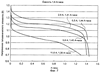 На фиг.9 показаны вольт-амперные характеристики этого гальванического элемента при различных значениях разрядного тока, которые демонстрируют хорошие нагрузочные характеристики гальванического элемента по предлагаемому изобретению и эффективность герметизации конструкции.