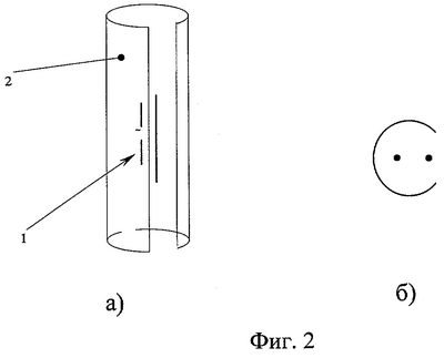 Антенное устройство-прототип содержит рефлектор 2 в виде цилиндрической поверхности с вырезанной вдоль образующей частью, внутри которого помещен источник возбуждения – электрический вибратор 1.