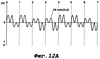 фиг.12А и 12В – синхронно-детектированный выходной сигнал ГК-потока (ГК×sin(2 t)), интегральное выходное значение синхронно-детектированного выходного сигнала, значение квантования с запоминанием интегрального выходного значения и ГК-данные для модуляции;